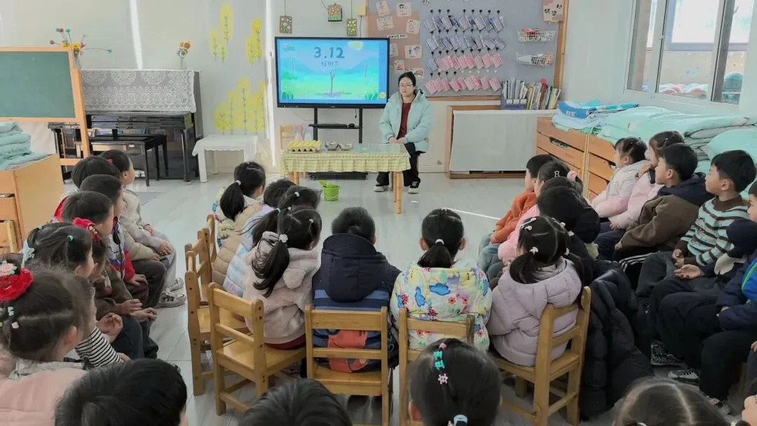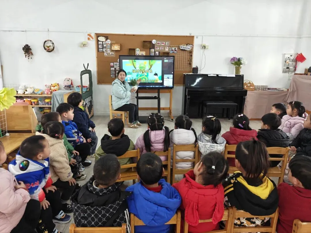 老师通过图片、视频、绘本等形式,向孩子们介绍了“植树节”的来历,带领幼儿认识了植树节的标志,了解植树的意义以及保护树木的常识。