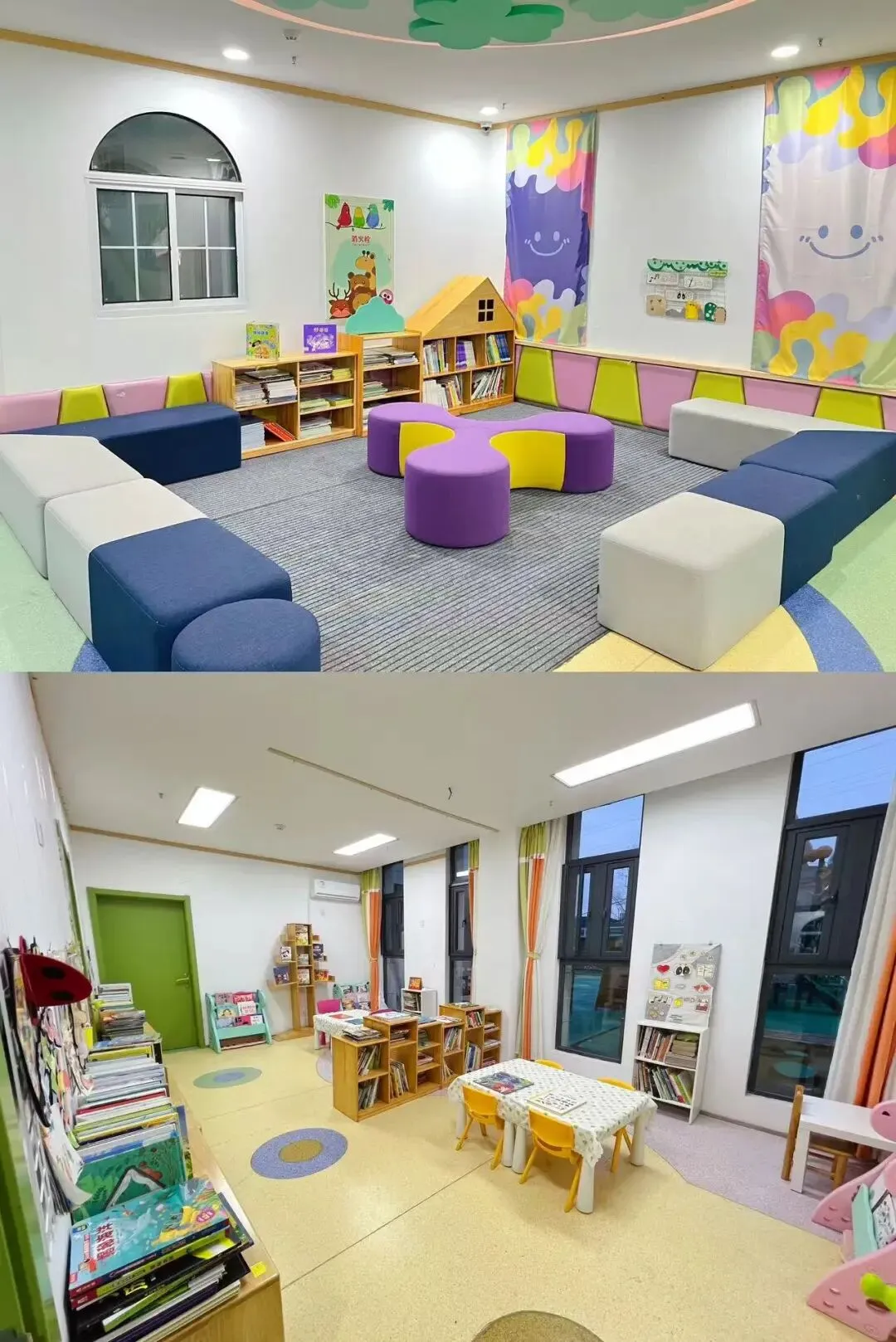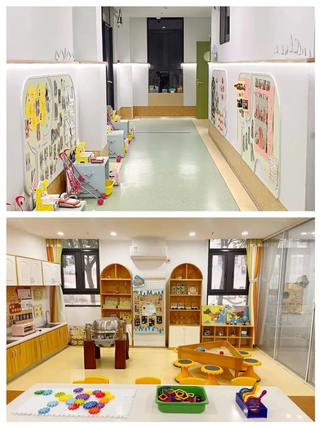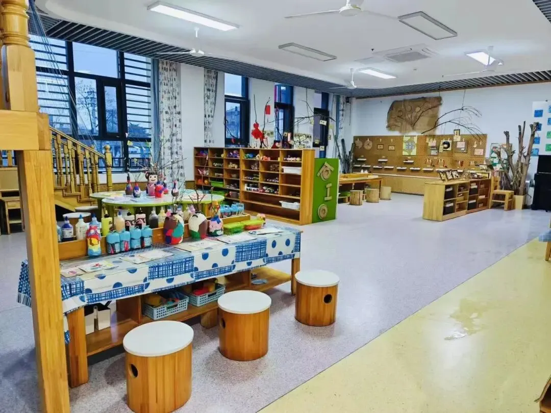 园所环境融合自然生态与教育设计,营造出兼具美感与功能的活动空间。室内设置亲子阅览室、乐高建构室、科学发现室、美工创意室、文化体验馆等专业活动室,每一处空间均以儿童视角设计,支持幼儿在探索中激发潜能、发展创造力。户外打造童耕实践园、玩沙戏水区、丛林探险区及小矮人庄园等特色区域,结合“春华、夏荫、秋实、冬绿”的四季景观,为幼儿提供自然探究与体能发展的理想场域,让孩子在真实环境中感知自然、快乐成长。