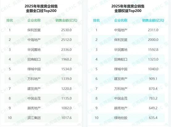 数据来源:克而瑞2025年年度房企销售榜单