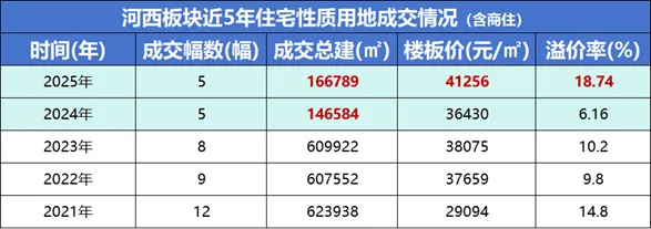 对于土地来说,越稀缺越珍贵,近2年河西土地供应量明显减少,连续两年成交建面仅约15万方,降幅超过70%。与此同时,楼面价持续攀升,2025年突破4.1万元/㎡。在此背景下,每一幅已成交的土地、每一个在售的高品质项目都更显珍贵。