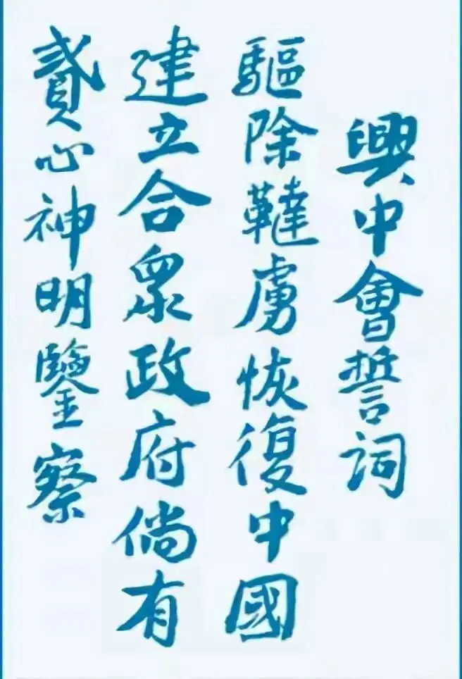 "今日之中国,首在驱除鞑虏,恢复中华,创立民国,平均地权。"