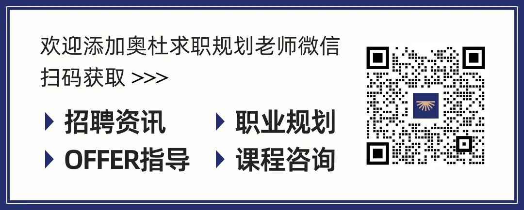 ◎ 欢迎添加奥杜求职规划老师微信,扫码获取>>>招聘资讯、职业规划、offer指导、课程咨询