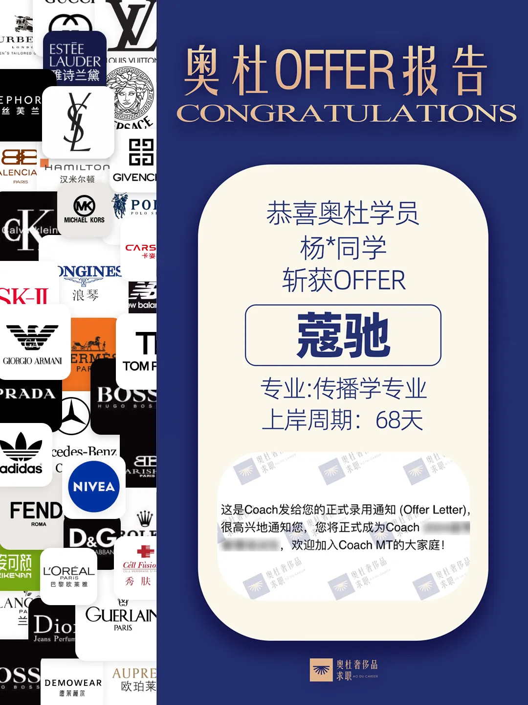 奥杜OFFER分享 | 南京师范大学传播学专业学生,成功收获蔻驰Offer【奥杜奢侈品求职】