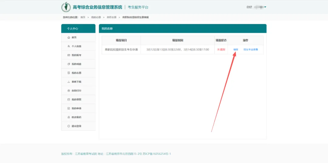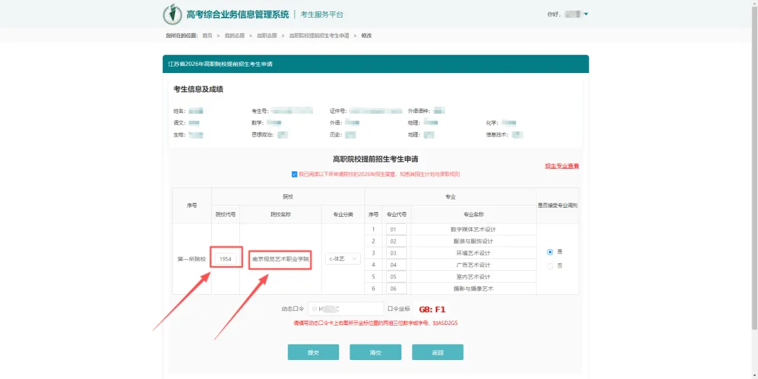 考生报名时同时填报专业志愿,每位考生可填报6个专业志愿和1个服从志愿。我校招生代号是“ 1954 ”。报考我校的考生,建议填满6个专业志愿,并勾选专业调剂,增加录取几率。