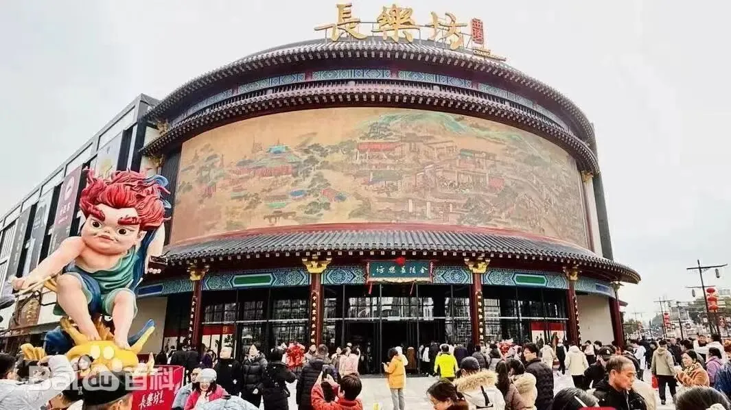 金陵长乐坊位于南京长乐路132号,地处于夫子庙和老门东两大历史文化街区之间,总面积约4.02万平方米。这里曾是南京针织内衣厂的旧厂区,后来改造成好又多和沃尔玛超市,现在打造成华东首个沉浸式大明文化空间,取名特别有内涵:金陵长乐坊。我们坐公交车到琵琶巷车站下车,时间为下午五点左右,正逢人流高峰。步行约2分钟就看到川流不息的人群以及门前的魁星雕像,再往前走了几步,就走到长乐坊门前,看看门头招牌非常壮观。"長樂坊"金陵字样下面,影视动画不停的更新,很是吸引眼球,我赶紧拍照留影。