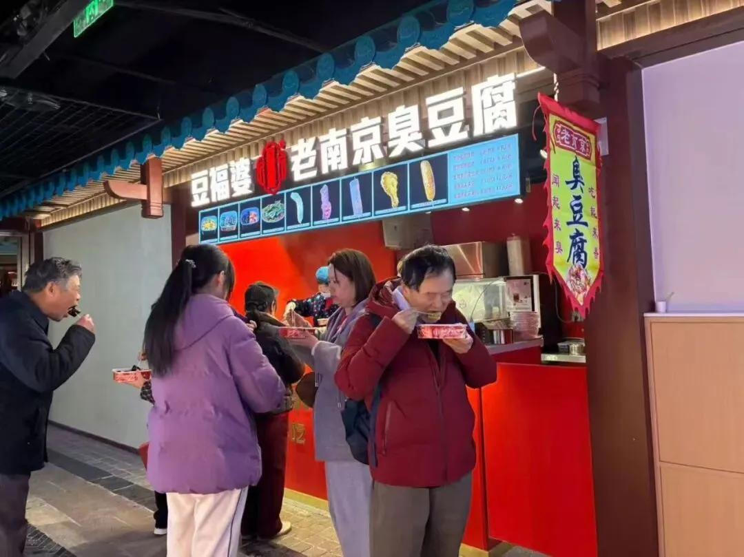 "800米逛遍吃遍南京城。"按照这个说法与思路,在二楼,我们折转而身,没有走进"状元巷",而是走进了"西市"。走没几步,就看到"老南京臭豆腐 经典小吃 百年传承"广告牌,我忍不住馋涎欲滴,但想到油炸食品还是少吃为妙,便于卖家商量:"十个油炸豆腐干,我只想买一半,可以吗?""可以"卖家爽快的应允。"扫码付款"津津有味的吃,想到多年前我在新百后门前,也是吃油炸臭豆腐干,竟然被学院党委郑书记看到了,第二天上班见面之时,他玩笑说:"油炸臭豆腐干好吃吗?"哈哈……至今记忆犹新。