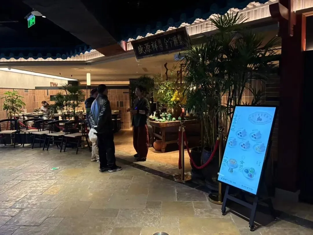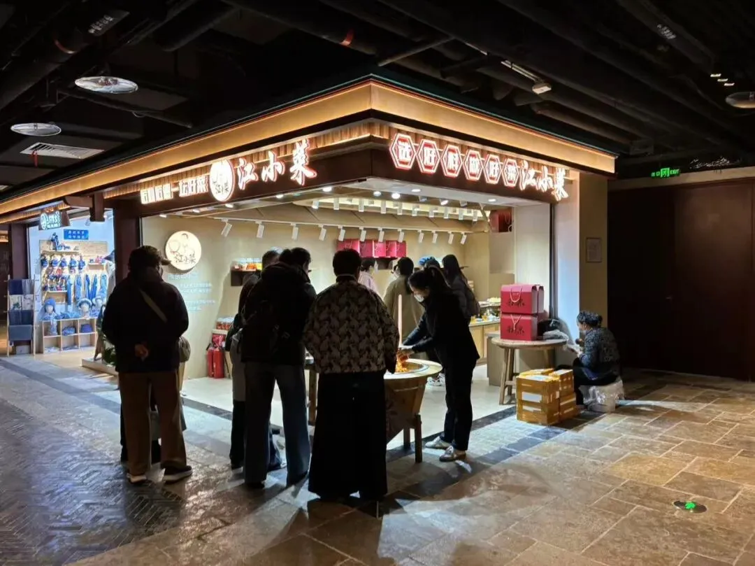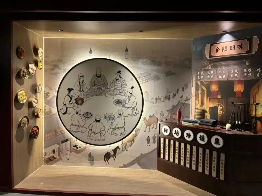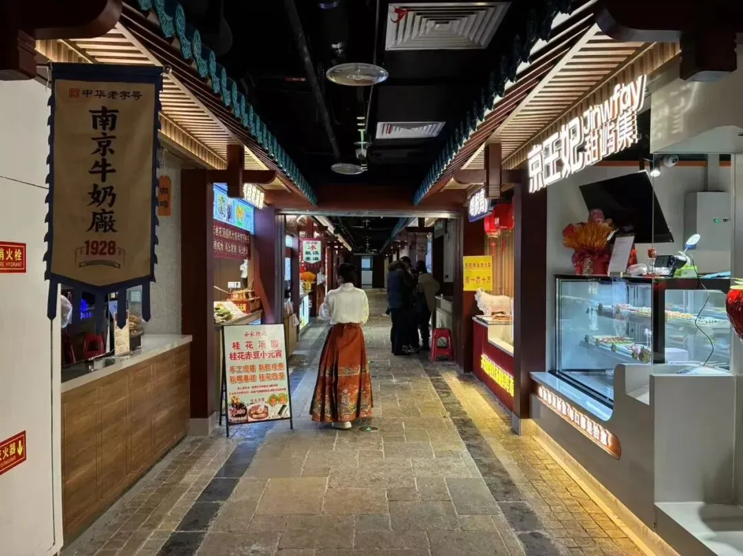 "金陵今日,当以何味相伴?"我们自己看到这里不仅有市井烟火,还兼顾文化叙事,既打造了一批承载在地文化的特色品牌,也留住了南京本土的烟火气息。南京老字号“盛源祥”在此打造首家“金宁雅集”,以全鸭宴致敬金陵食韵。有鲜美可口的江小菜,也有"金陵回味"人物、食物的图表,更有"中华老字号'南京牛奶廠"专柜等等,沿袭了南京百年饮食文化传统特色。
