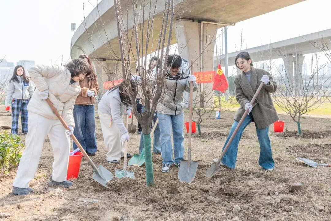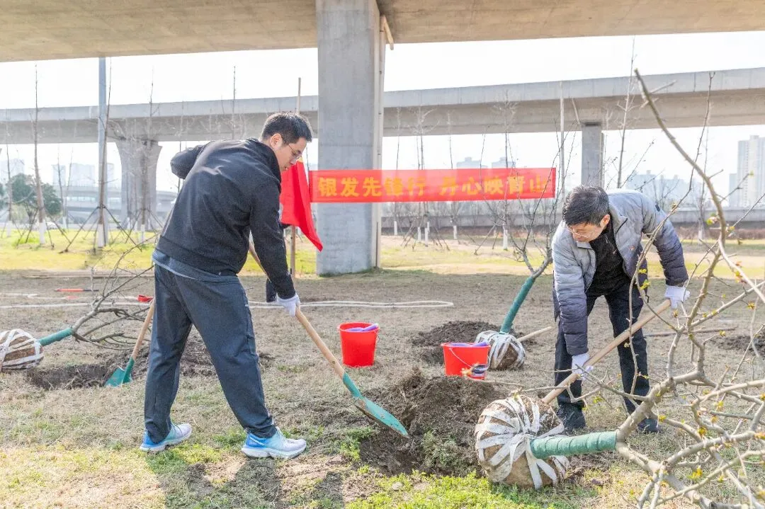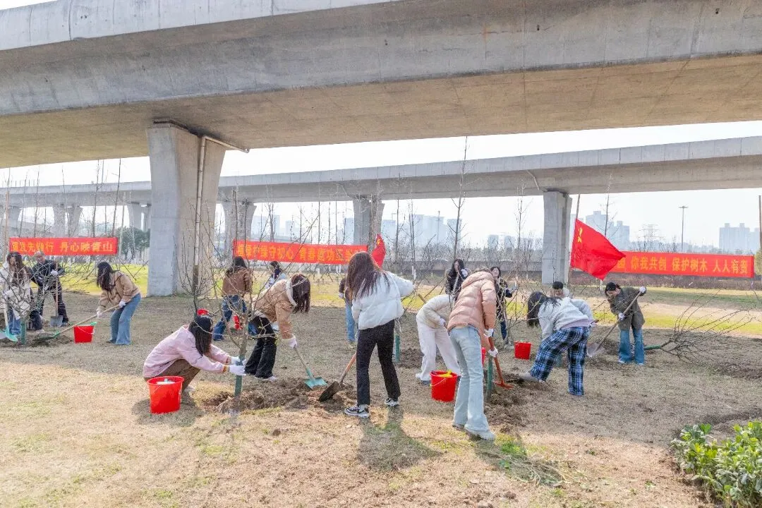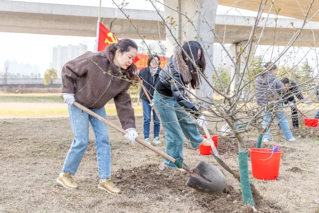 南京优车伴党支部联合农花社区举办主题为“春意盎然种梦想异想天开焕新园”的植树节活动。