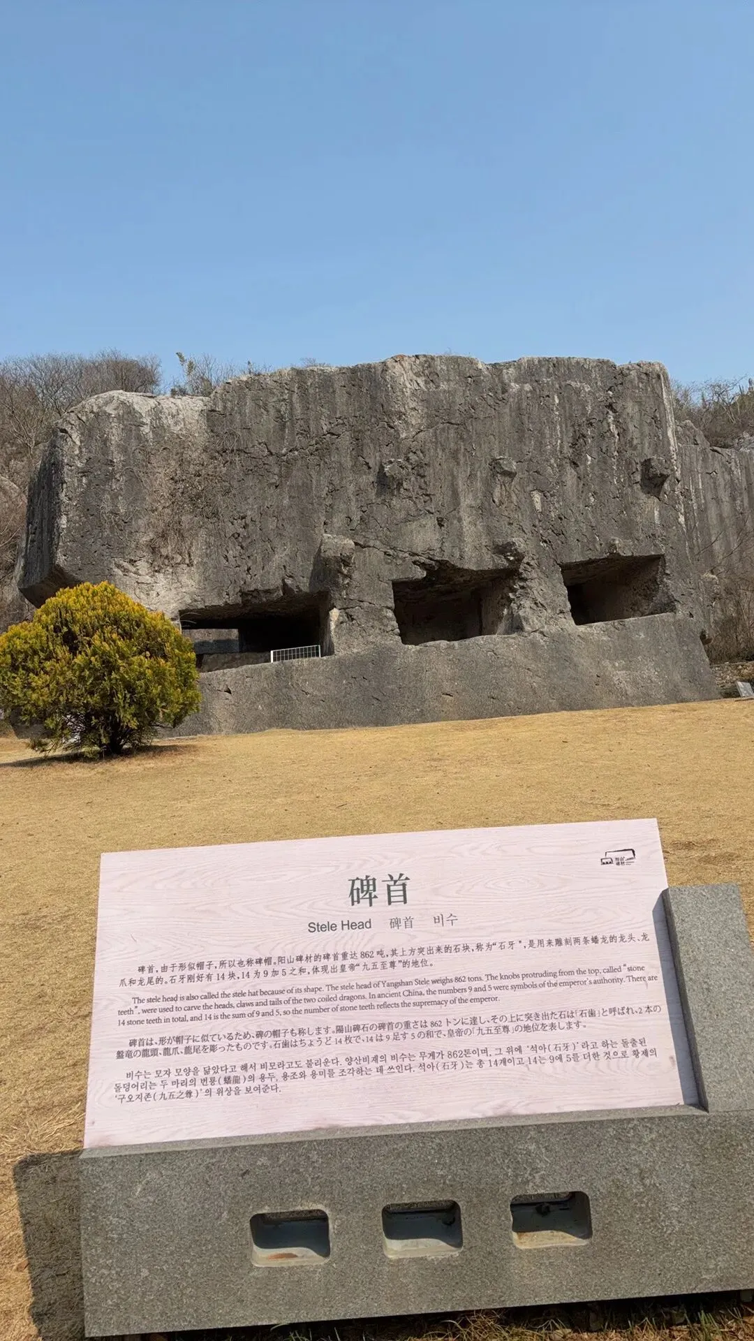 下面是我们参观的阳山碑材,明代朱棣为其父亲朱元璋修的功德碑。但是奇怪的是即将完工时,搁置多年至今。