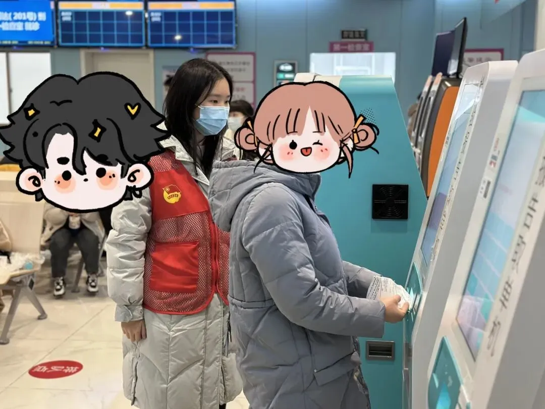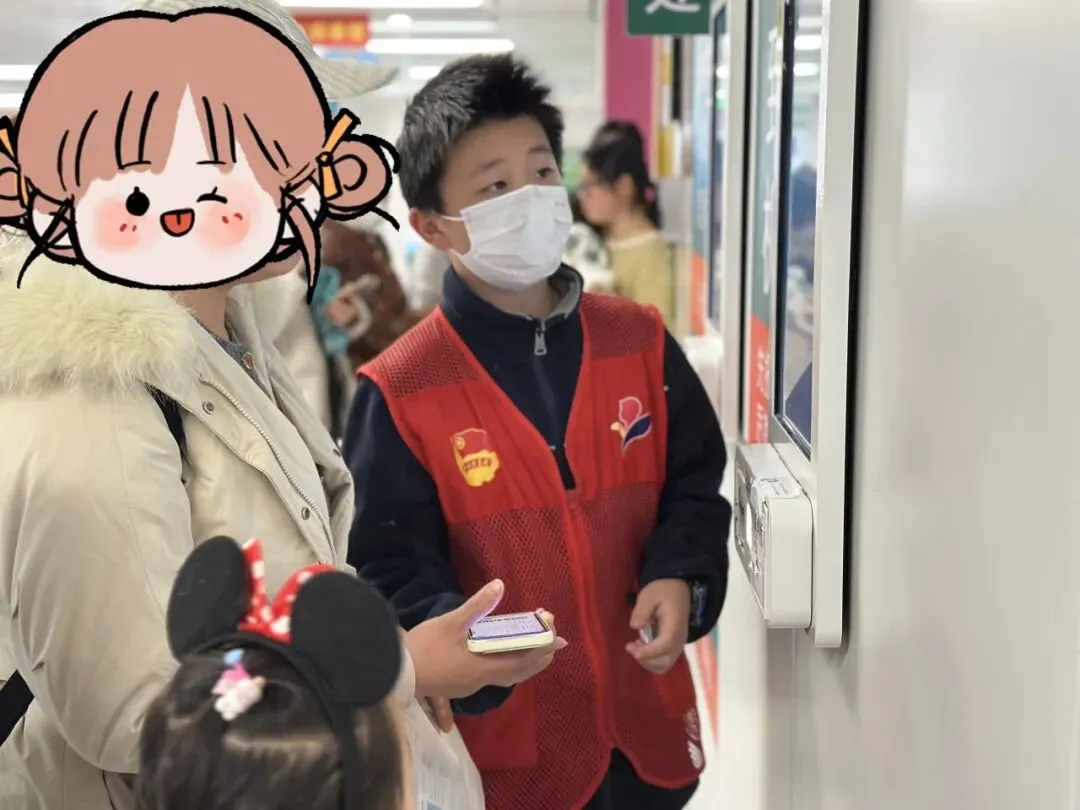 “向日葵”导诊员们迅速进入角色,身着统一志愿标识,分布在门诊大厅、各楼层导诊台、自助服务区、候诊区等关键点位,开展辅助就医服务。他们主动上前询问就诊群众的需求,耐心解答“挂号在哪里办”“化验报告在哪里取”“儿科诊室怎么走”等常见问题,用清晰的指引为就诊群众节省时间;在自助设备旁,他们俯身协助老年家属操作挂号、缴费、打印报告,放慢语速、反复讲解,让数字服务不再“冰冷”,切实解决老年群体就医的“数字难题”;面对哭闹的患儿,他们温柔安抚,用真诚的笑容化解孩子的恐惧,用暖心的话语传递关怀,为紧张的就医过程注入暖意。