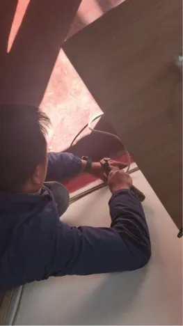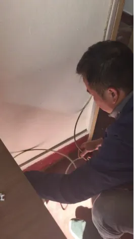 老人的安置点是老旧小区,楼道狭窄、墙面老化,布线难度大。服务队的技术骨干没多话,一人核对户号、联系后台办理移机手续,一人爬梯子、钻墙角,逐段排查线路走向。“线路得绕开老人常走动的位置,插座高度要方便老人插拔。我们把线槽固定得更牢些,避免老人绊倒。”