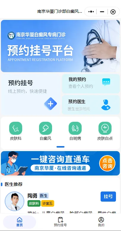请在就诊前一日,再次通过官方小程序“南京华厦门诊部白癜风挂号中心”确认排班。祝您三月安康,就诊顺利!
