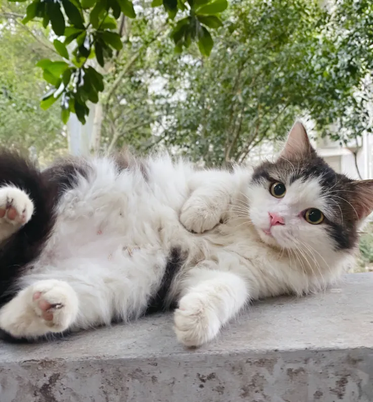 见到人就热情地翻肚子:它对人完全没有防备。见到你,它就翻出小肚皮,用那种“你摸我呀”的眼神看着你。它不知道有些人会伤害它,它只知道——有人来了,要开心。