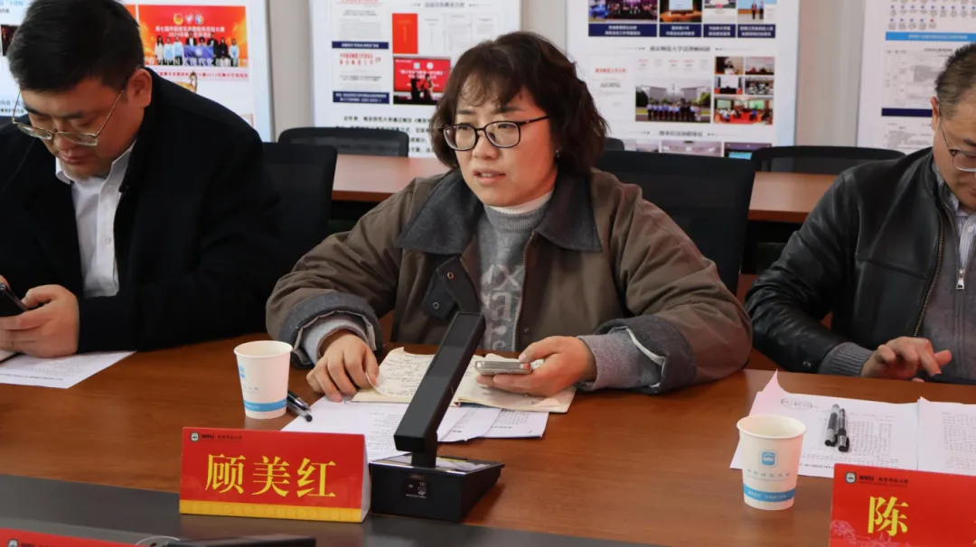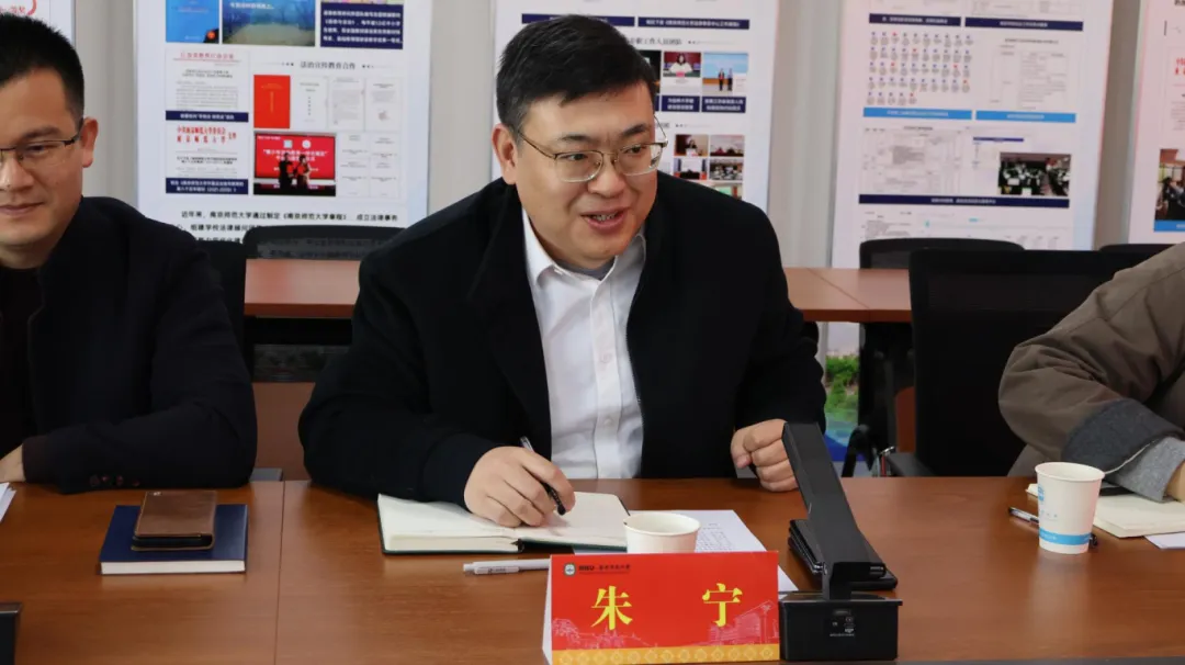 南京师范大学法学院党委书记朱宁对我院一行表示热烈欢迎,并详细介绍了该院办学基本情况及近年来建设发展成果。副院长倪斐,陈辉分别围绕本科人才培养,研究生教育培养作专题分享,副书记顾美红介绍了学院党建工作特色经验和人才培养概况。双方聚焦新时代党建工作,本科教育教学改革,研究生培养提质,青年教师队伍建设,学生就业等重点内容,进行深入交流探讨,互学互鉴,凝聚共识。