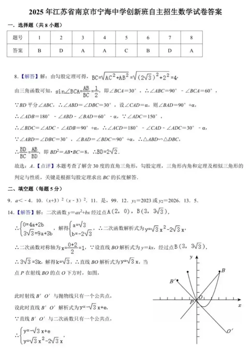 >2025年江苏省南京市宁海中学创新班自主招生数学试卷+答案