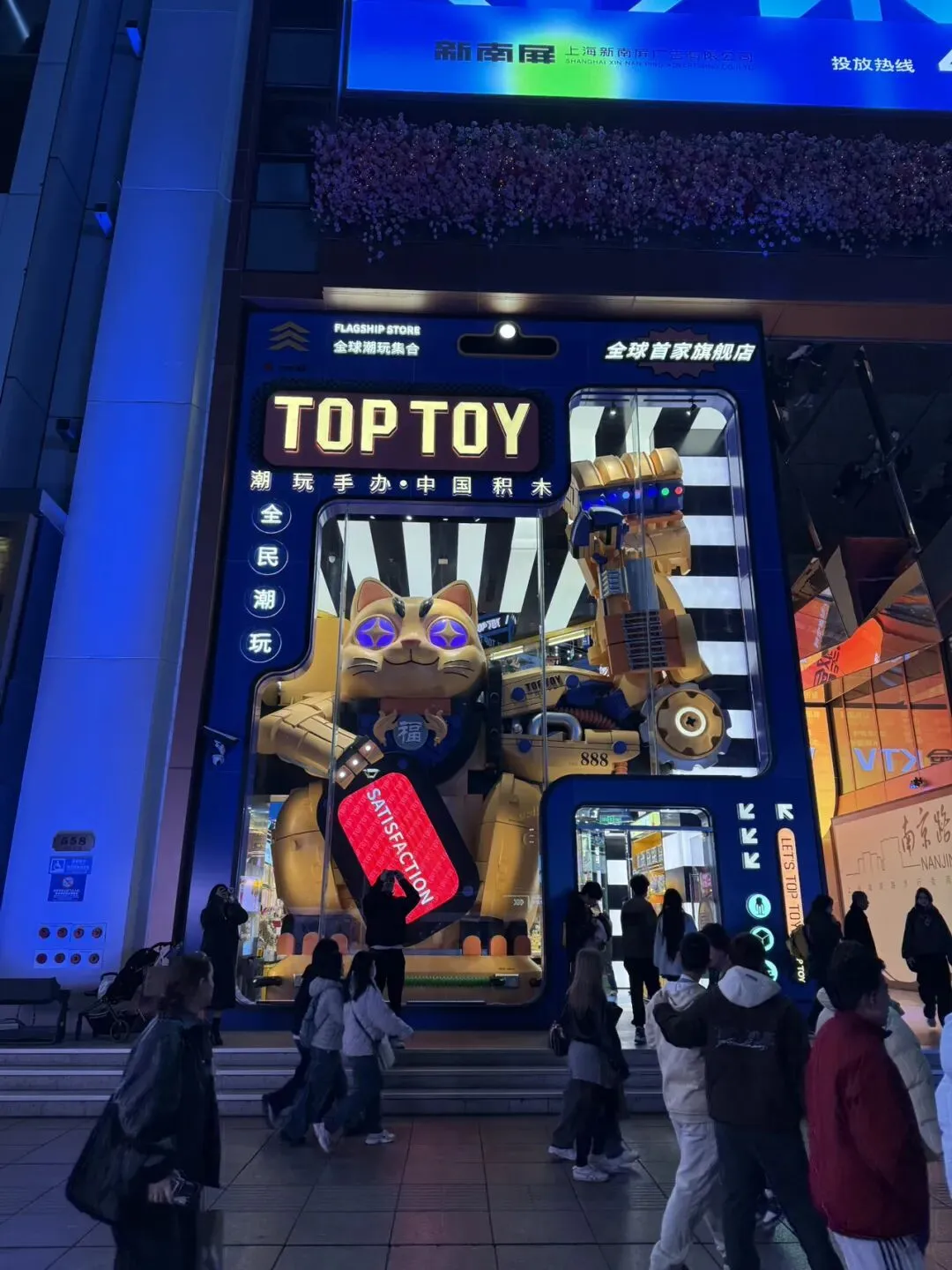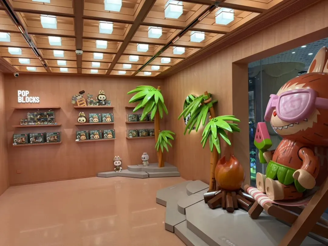 有很多潮玩店,泡泡两家店,名创的全球零号店、TOPTOY,还有一家就写着潮玩店。