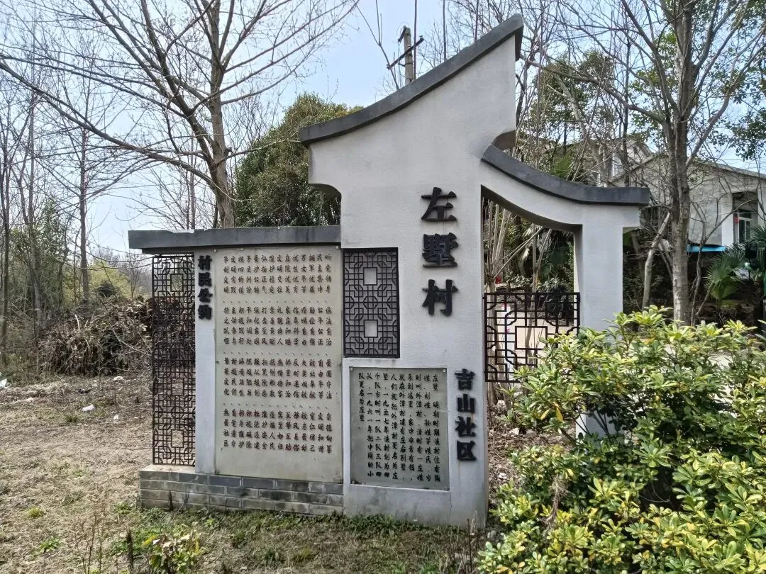 四百米后,又一处岔路口,左墅村到了。现在的村口,都会有各种造型的村名,美化村容。墙上村规民约,介绍左墅村来历。