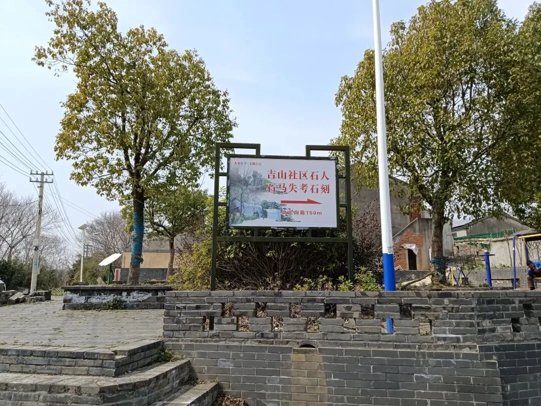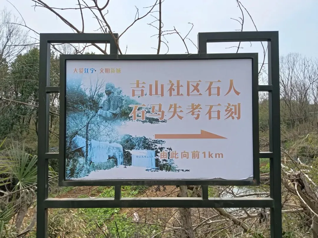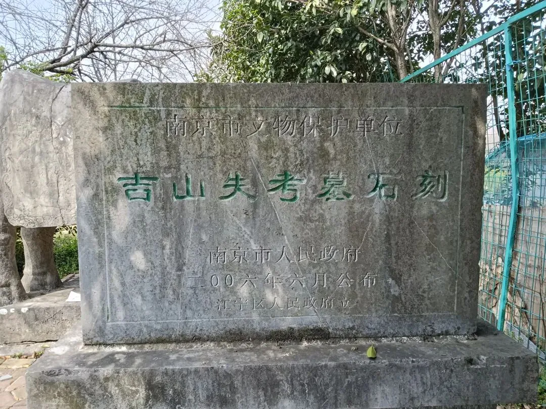 吉山社区左墅村失考墓石刻,被誉为南京地区雕刻最精美的石刻。最大看点,使用了可能僭越礼制的金瓜武士,国内仅有明孝陵长陵显陵有此规制。吉山石刻原有龟跌,石碑各一,华表一对,石羊、石狮、石马、石人各一对,立于神道两侧,这些石刻均在20世纪50-60年代当地修建水库时被毁。现存石人一对,石马一匹,墓碑和墓志铭被砌于水库涵洞入口处。关于吉山失考石刻的墓主人身份,目前几种推测,较倾向明代永乐年间丰城侯李彬家族存在关联,但墓主身份尚未定论。
