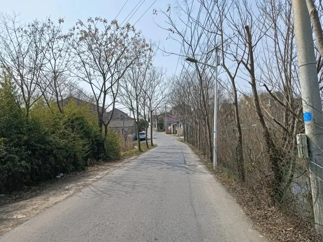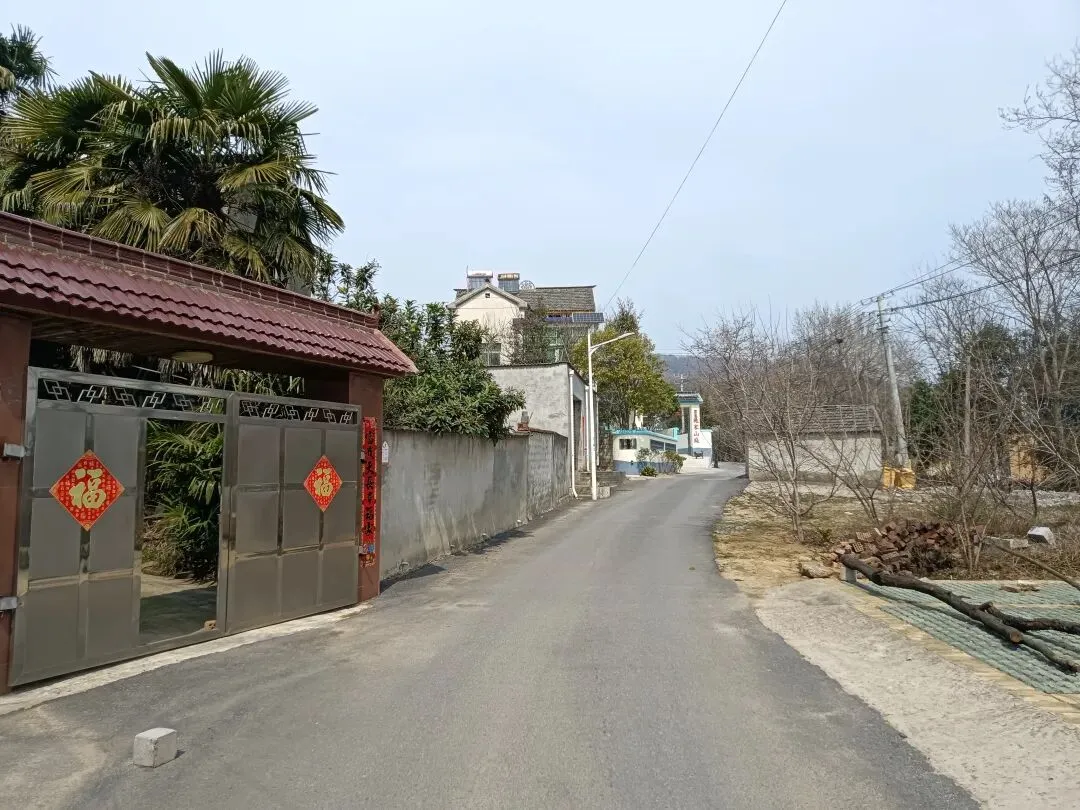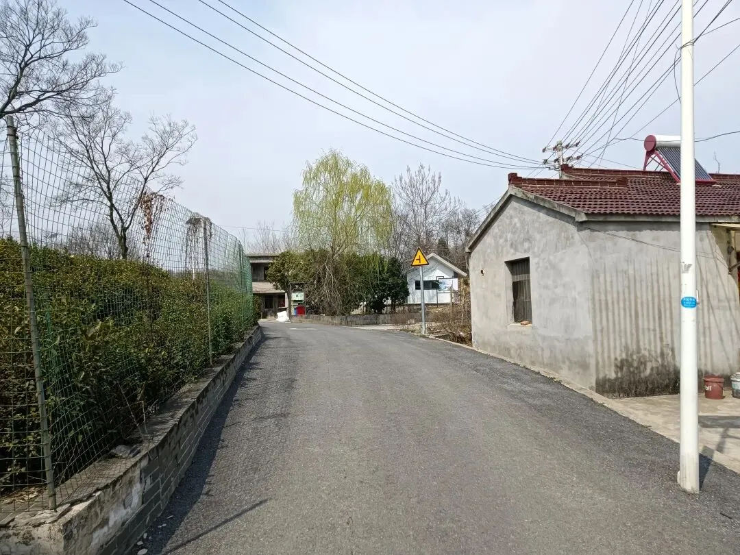 村里的路随弯就弯,村头广场看见第三块路牌。上面写明150米,其实不止。
