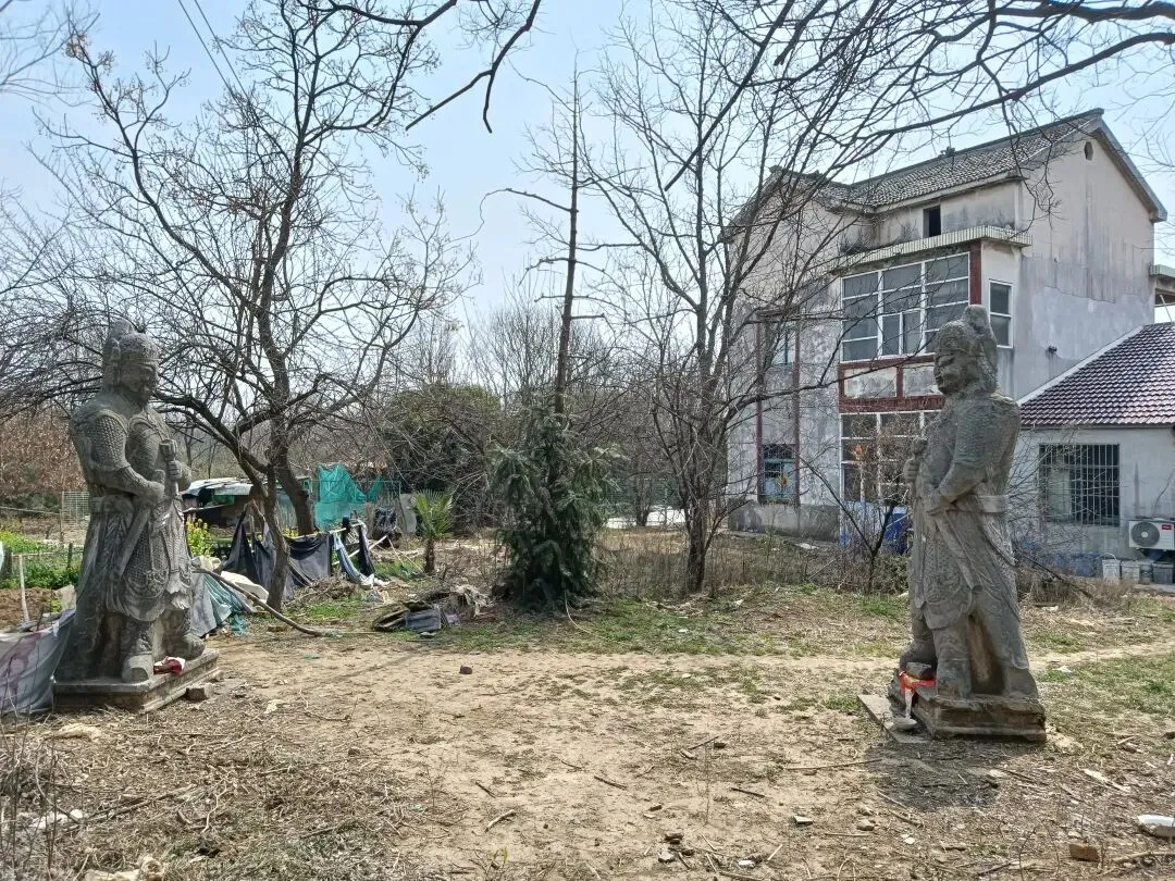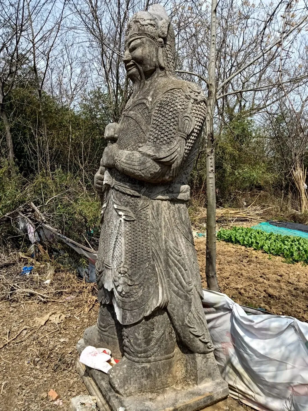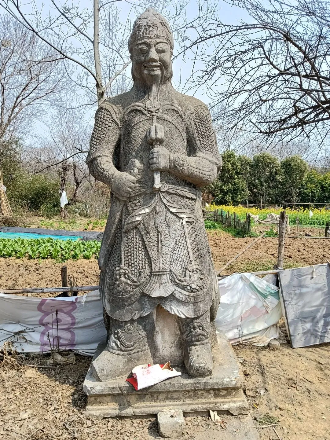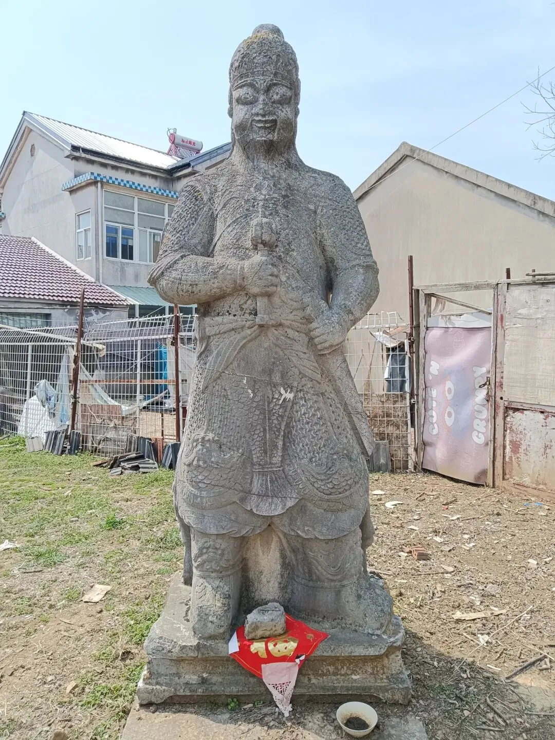 院子里站着石武将两尊,均高2.8米,地基是新做的。不知他们以前的站姿如何,是否这样对望了几百年。今日,武将脚下都有祈福贡品。逢年过节,村民依然不忘给他们上柱香。