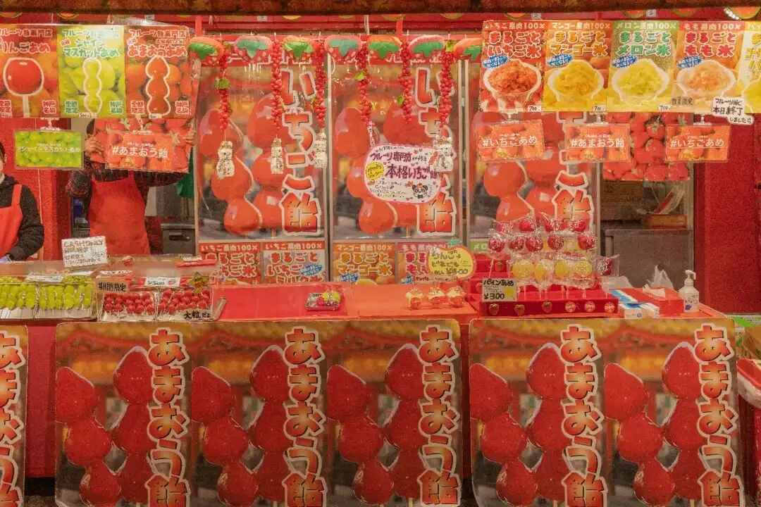 灯笼串成的长廊,是夜色里最动人的景致;一盏盏圆滚滚的红灯笼垂下来,光影在青石板上晃成流动的碎金;有人操着中文在挑糖葫芦,鲜红的糖衣在灯下亮得晃眼;还有的举着刚买的桂花糕,笑着和同伴用日语低声交谈;还有店主在门口热情地招呼,乡音与异国语言交织,在灯笼影里撞出温柔的回响。