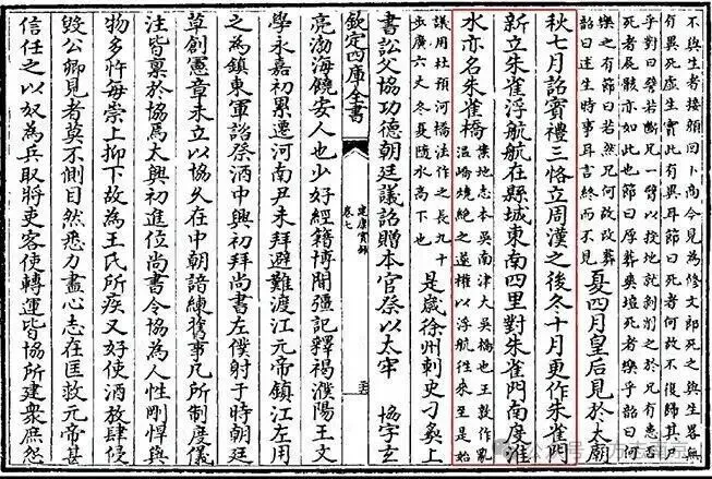 图1:唐·《建康实录》(四库全书本)关于“朱雀航”的记载,图源@方志南京