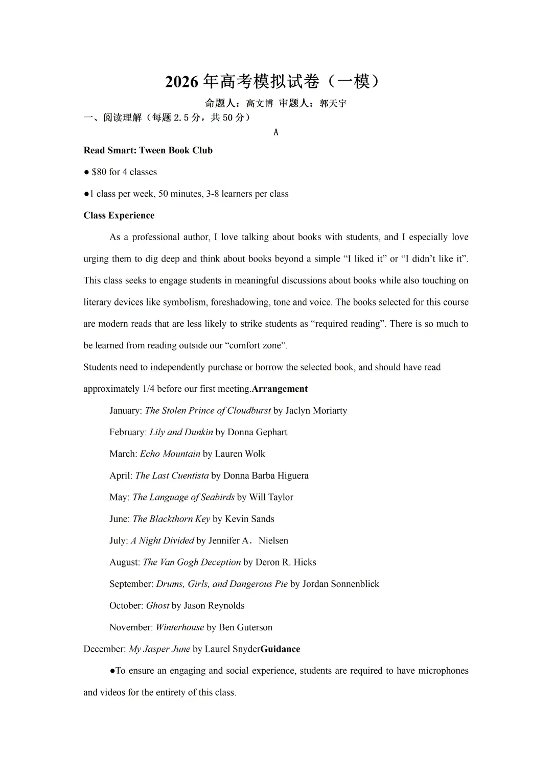 2026届江苏省南京市鼓楼区名校联盟高三下学期一模英语试卷及答案