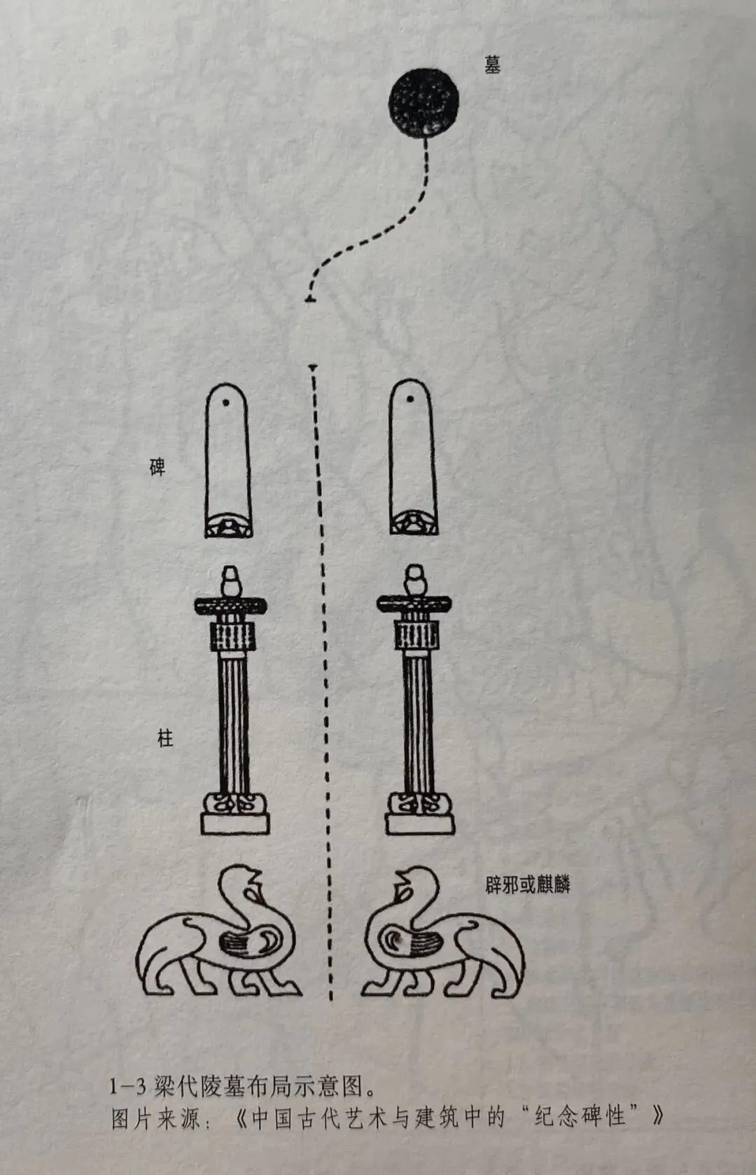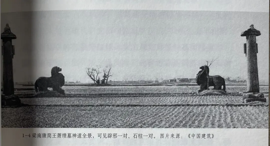 南朝陵墓着力于神道石刻及墓室壁画之精雕细琢。早在汉代,墓前就辟有神道。南朝四朝中以梁代陵墓神道形制最为完善。大都设有石兽,石柱,石碑,其余各朝仅有石兽。