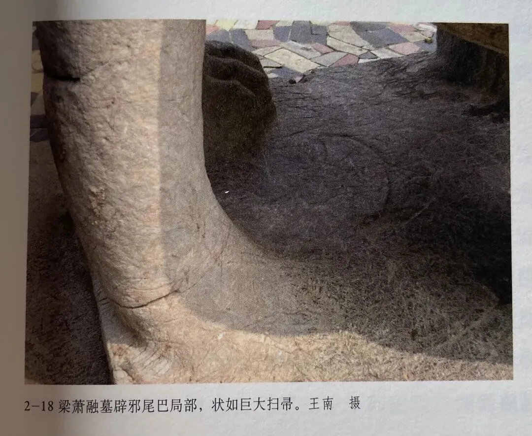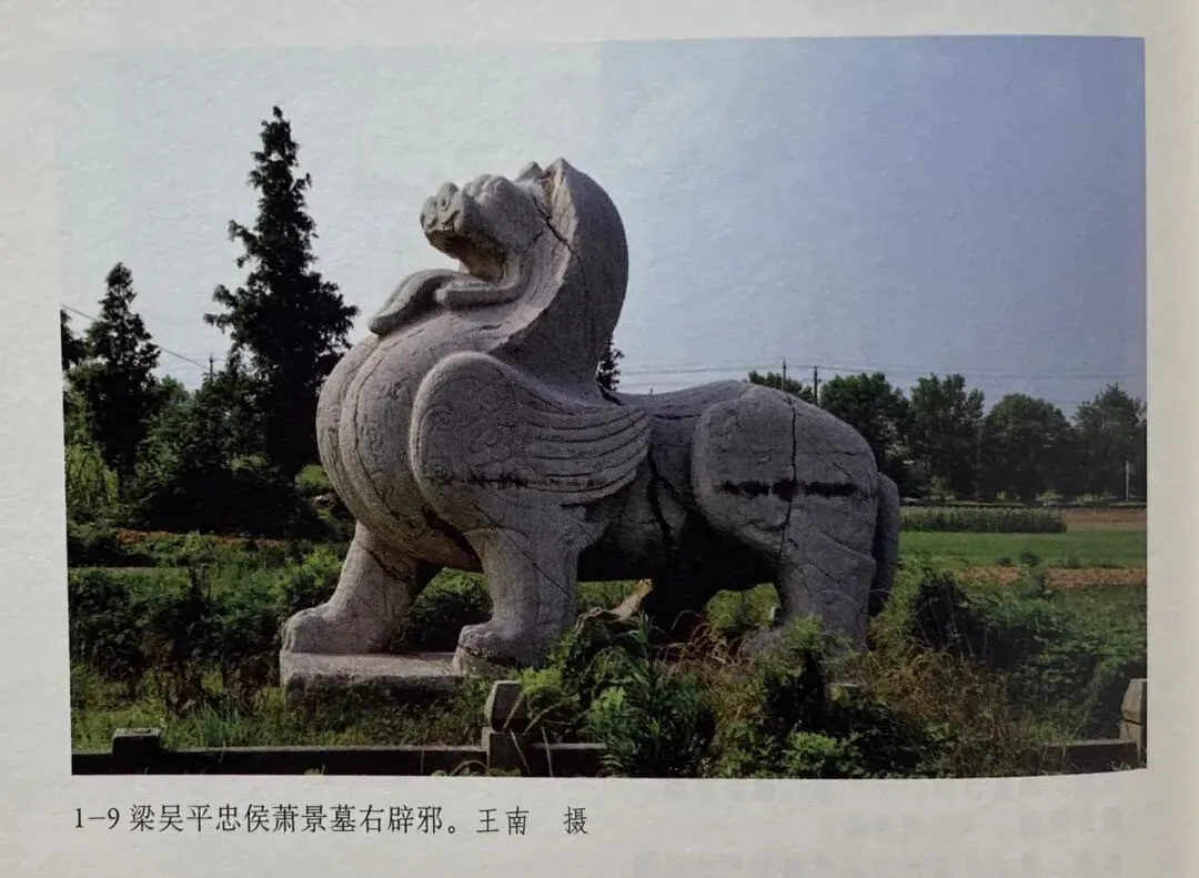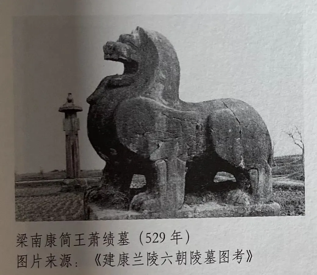 其二为梁吴平忠侯萧景墓辟邪,南京市徽即以此为原型。
