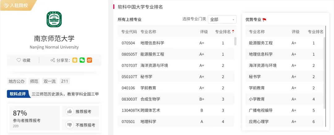 师范与文理特色相关多个专业拿下软科全国第一,不用多说。能源服务工程、地理信息科学、秘书学、学前教育、海洋资源与环境,都是王牌强项。