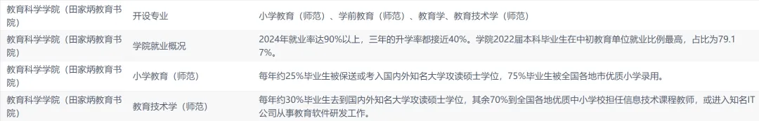 开设专业:小学教育(师范)、学前教育(师范)、教育学、教育技术学(师范)