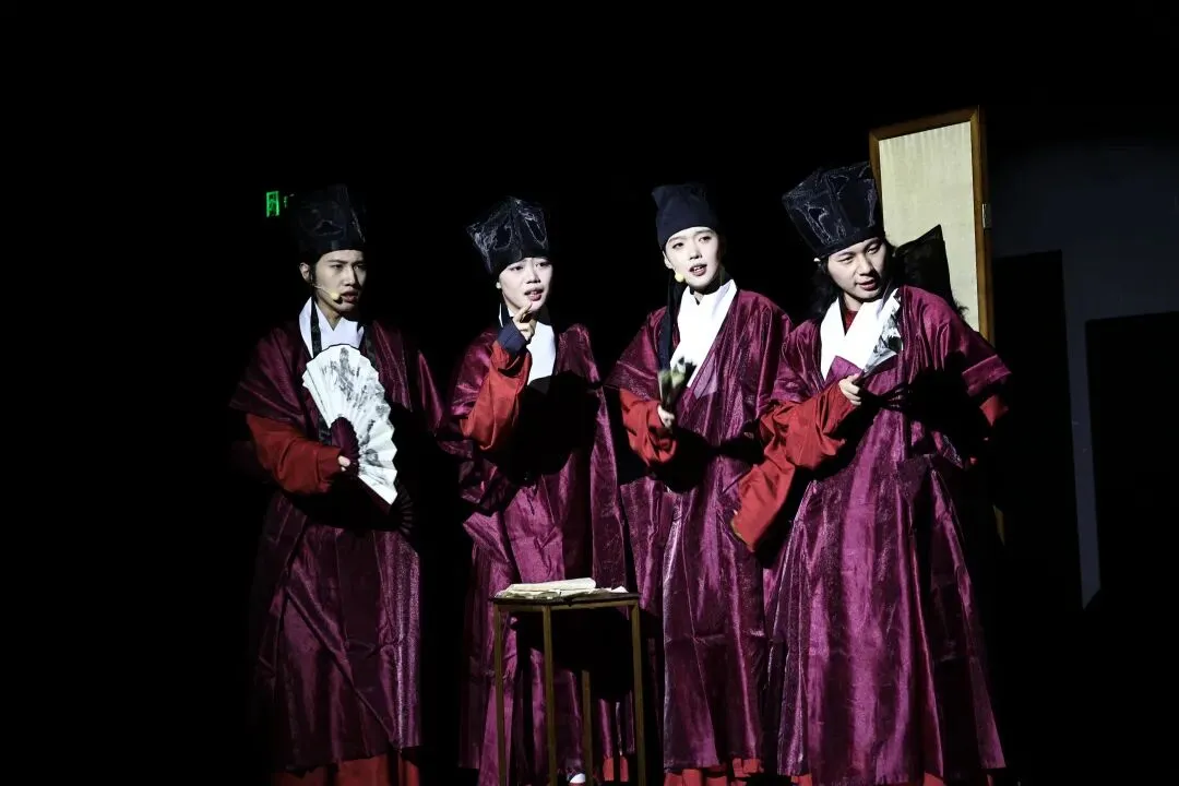 还有两位女演员,反串扮演“士人甲乙丙丁”中的两位。