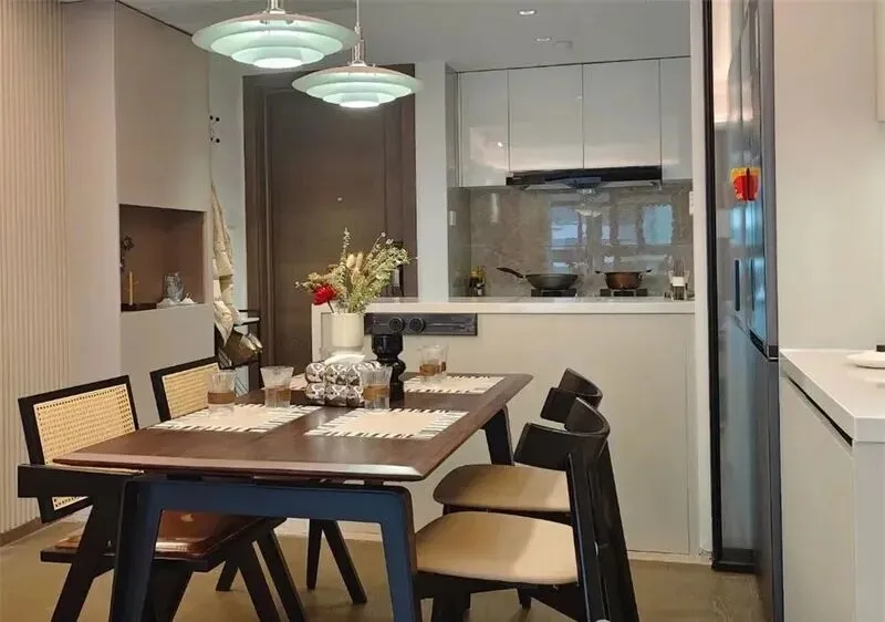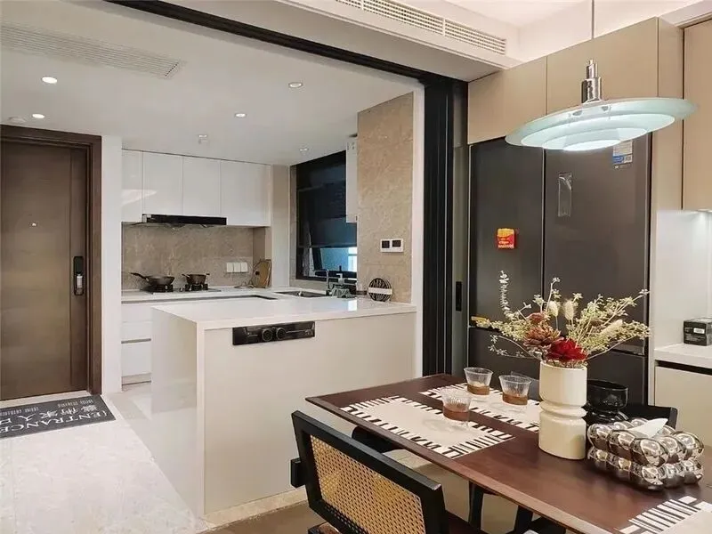 2 半开放式的好处其实挺明显,第一,空气流通,油烟能很快飘出去,不会积在屋里,我记得以前住那种密闭厨房,冬天炒菜时窗户一关,屋里一会儿就熏满油烟味,一做完菜头发和衣服上都是味道。