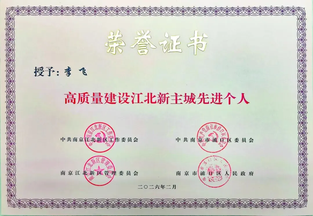 公司总经理李飞荣获江北新区