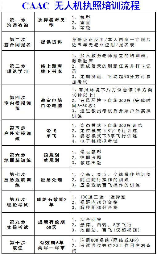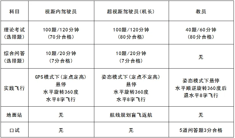考试流程:理论考试→综合问答考试→实操考试→地面站考试(仅超视距)→考试通过→拿到无人机驾驶执照缺考、缓考及补考