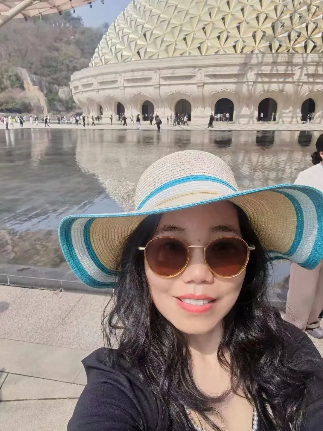 最近吸引我的就是它的“大菠萝”了。“大菠萝”实际上是牛首山的佛教建筑,造型很独特,前面是一个大大的水池,映照出它奇特的造型,真是美出天际,颇有印度“泰姬陵”的美感。大学时期曾有一段时间痴迷于林徽因的《建筑美学》,说实话,这趟南京之旅,我是来体验建筑之美的。