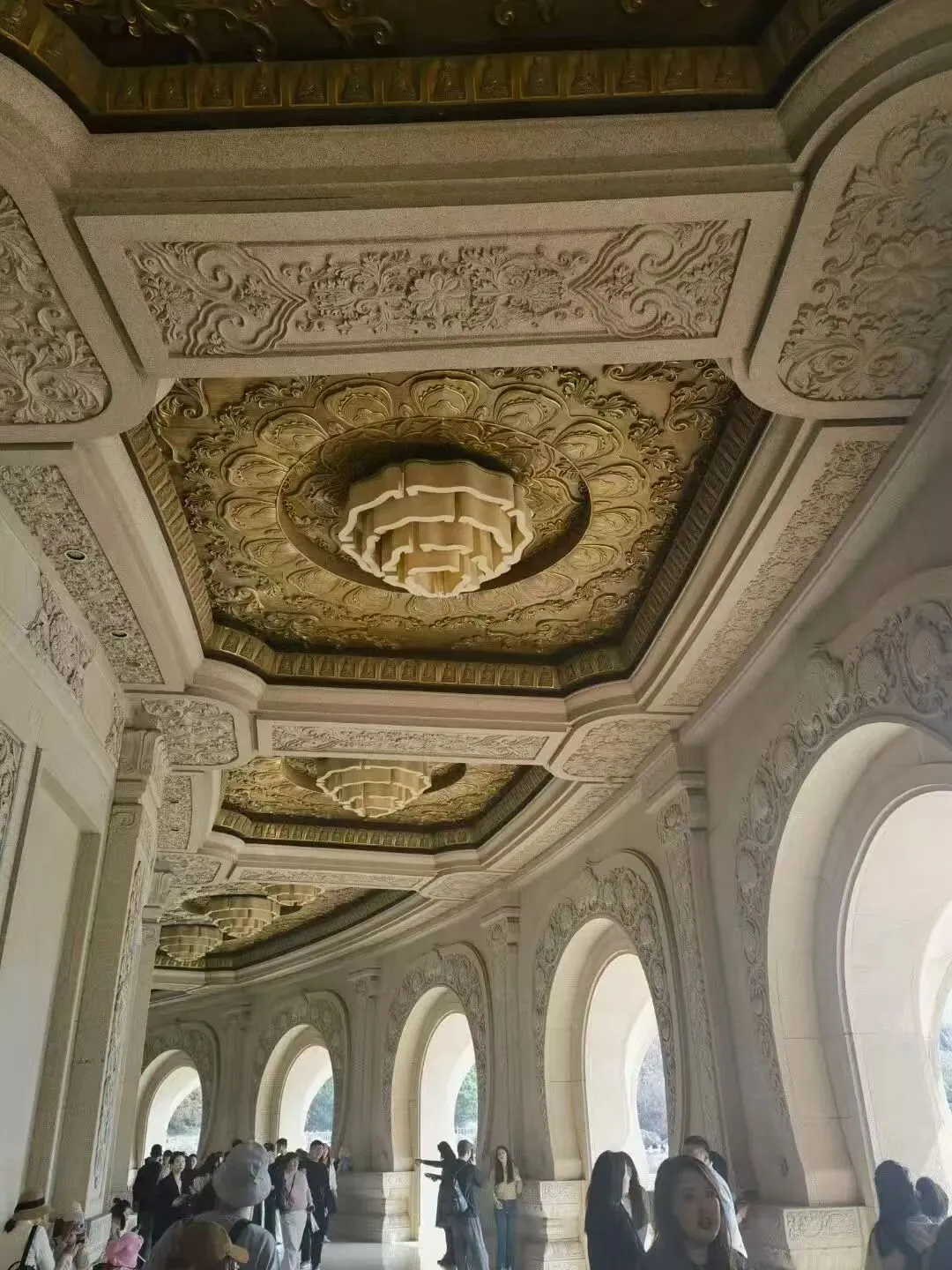 地上最美的有两个机位,一个就是正门,“大菠萝”和它的倒影了,堪称经典机位。还有一个就是它的欧式长廊,很多漂亮的小姐姐都在这拍照留念。最让人震撼的就是地下宫殿了,巨大的穹顶、绚丽的灯光、精美的壁画相互映衬,共同营造出一种超脱尘世、神圣不可侵犯的庄严感。