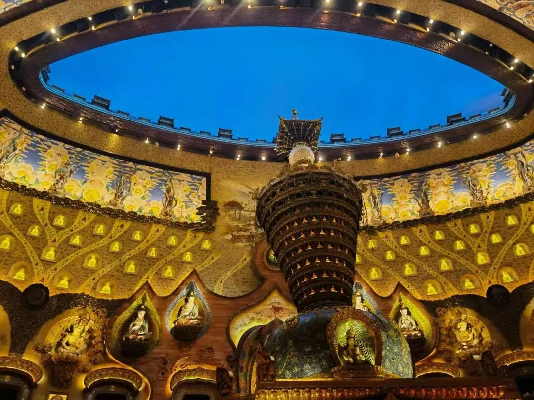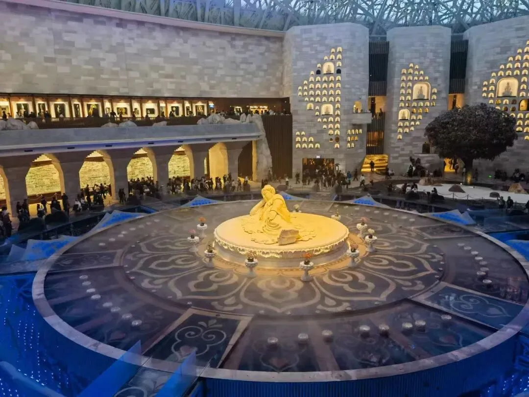 每一寸空间都如同精心绘制的画卷,每一个细节都彰显出精妙绝伦的匠心独运。环绕着主殿,多个展示厅与艺术空间依次排开,通过不断变换的角度和光影,展示着不同的视觉美景,让人不觉被它宏伟的规模和精巧的构思所深深打动,惊叹它现代化建筑与佛教文化的完美融合。地宫堪称视觉盛宴的绝佳之地。