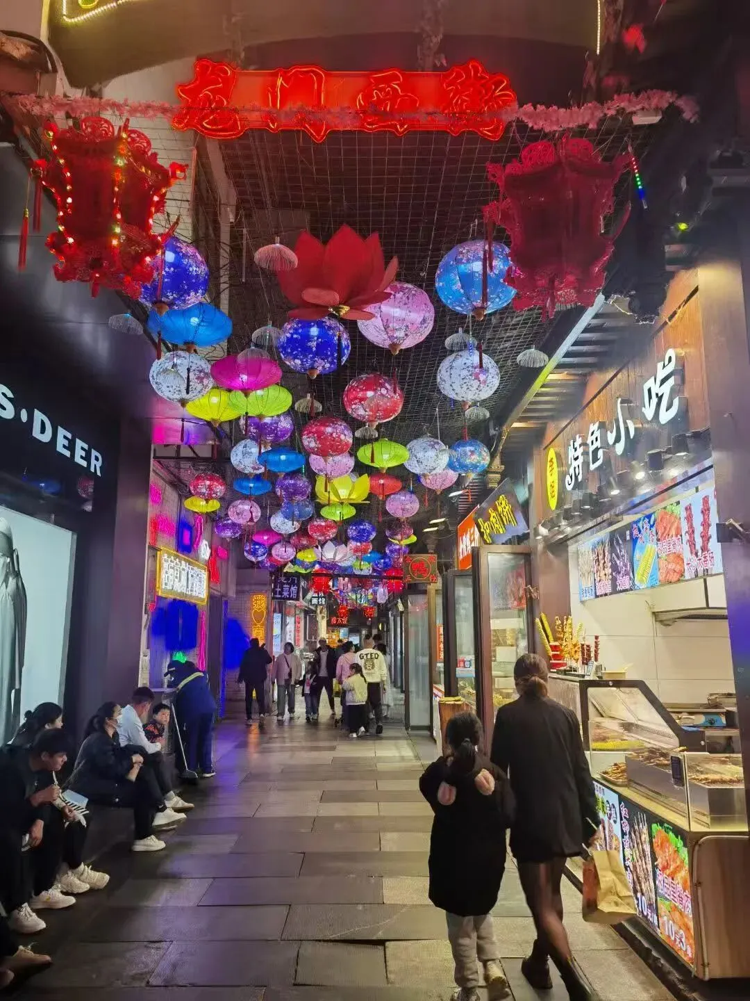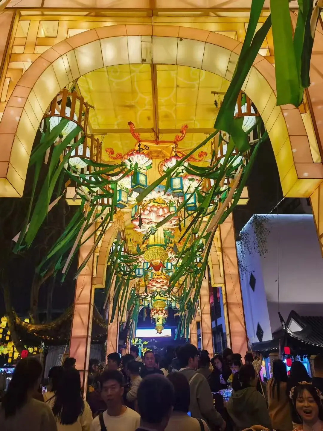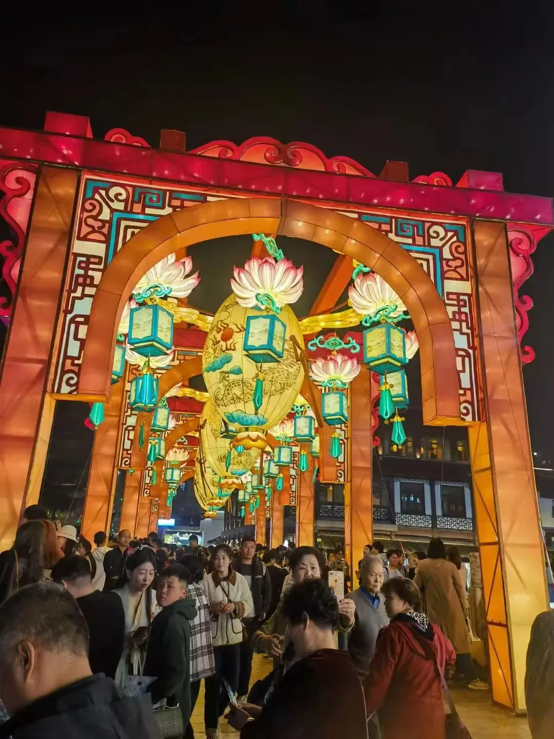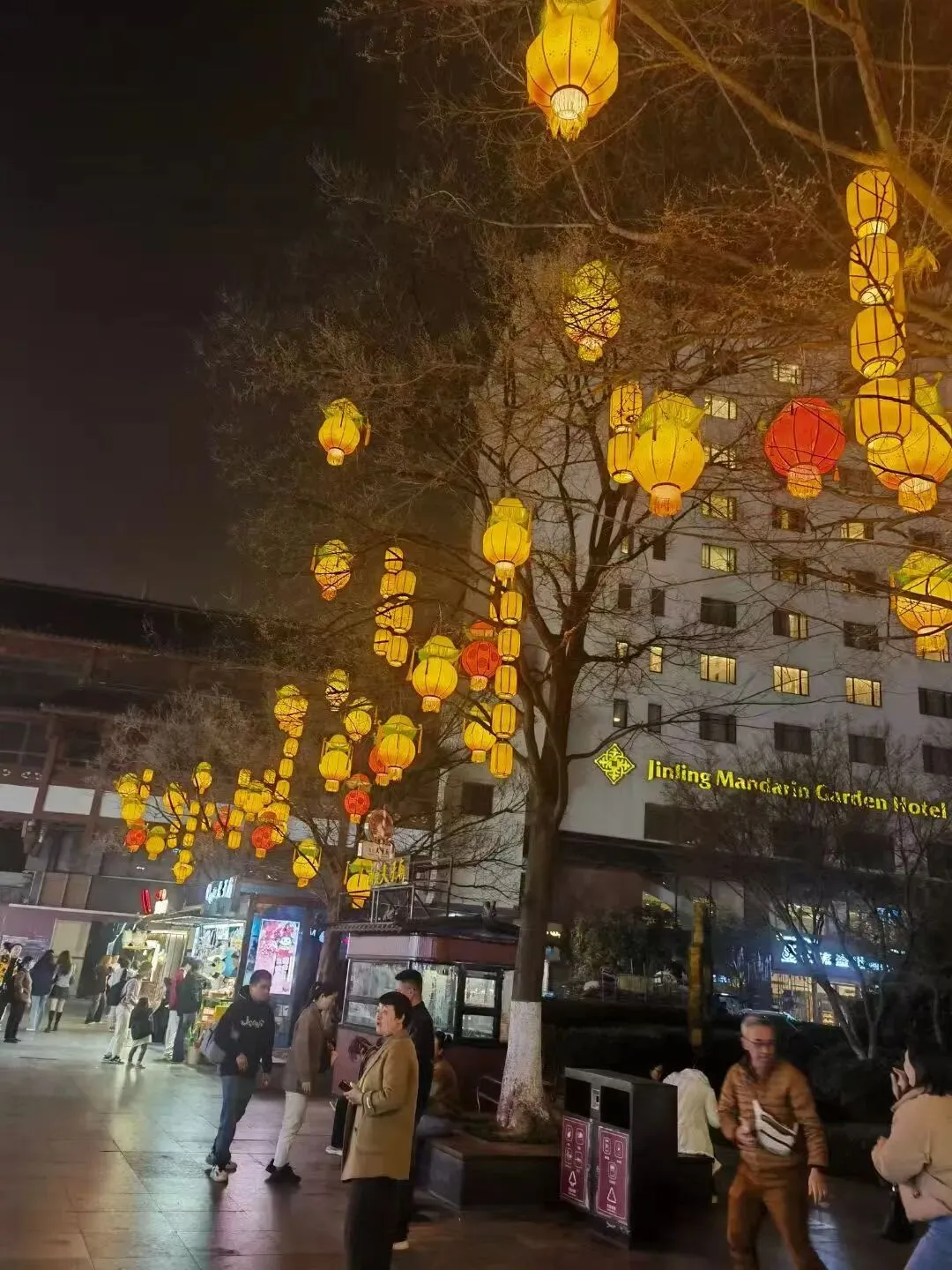 正巧赶上了“第三十八届中国秦淮灯会”。夜晚的夫子庙和秦淮河,游人如织,灯如白昼,摩肩擦踵,目不暇接.......一树的橙红色灯笼相间分布,莲花灯垂下缕缕绿色的丝绦,古色古香的山水灯笼渲染,五彩缤纷的大小灯笼荟萃.......
