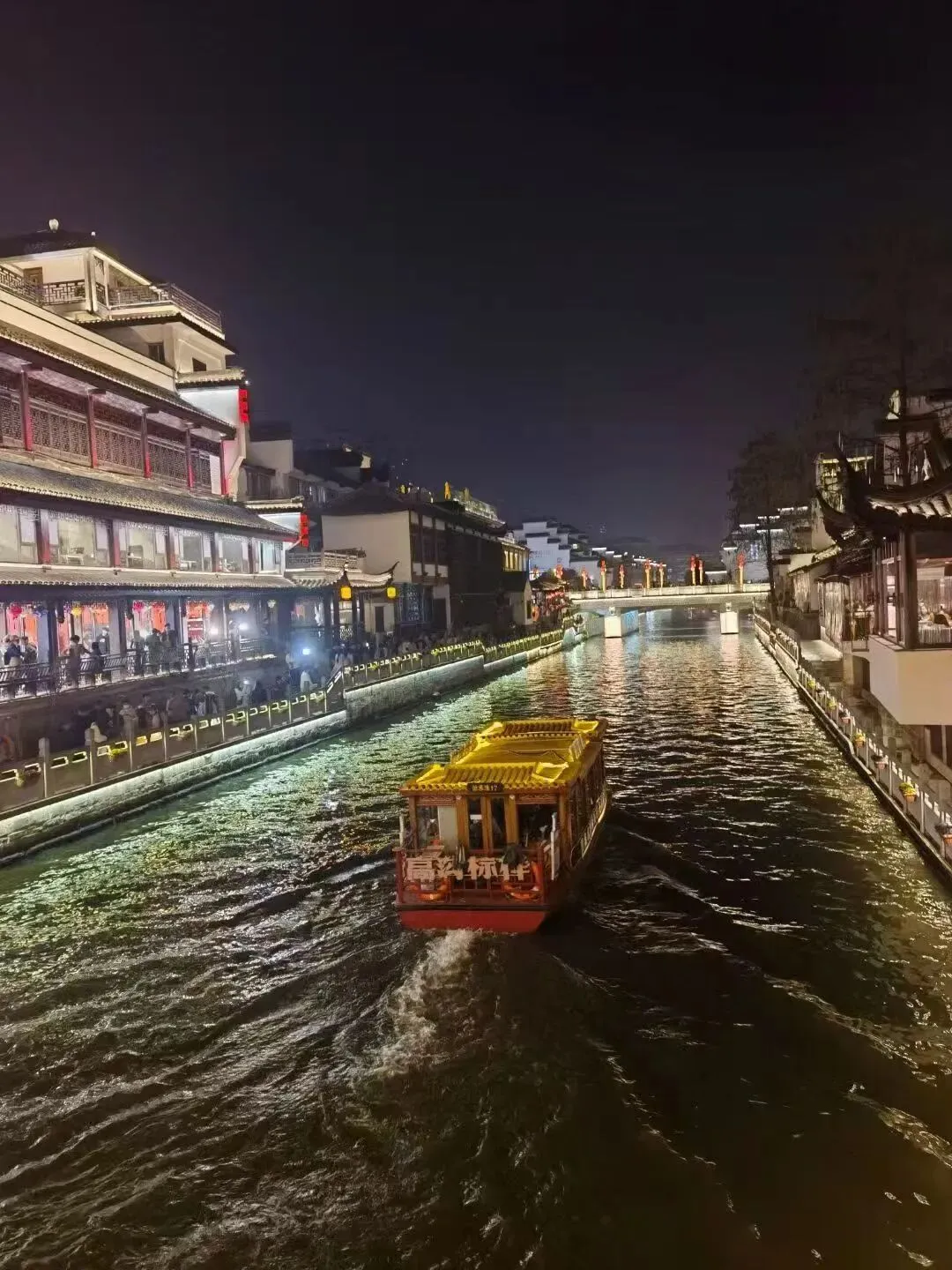一艘艘画舫船在十里秦淮河慢慢地荡开温暖的光晕,河面上传来声丝袅袅的琴音,水面上倒映着美丽的花灯,与两岸的古建筑相互辉映,构成了一幅精美动人的华丽画卷。夜晚的夫子庙和秦淮河才是真正的灵魂所在。真可谓是:十里繁华邀九州俊彦,六朝逸韵扬千载文光。