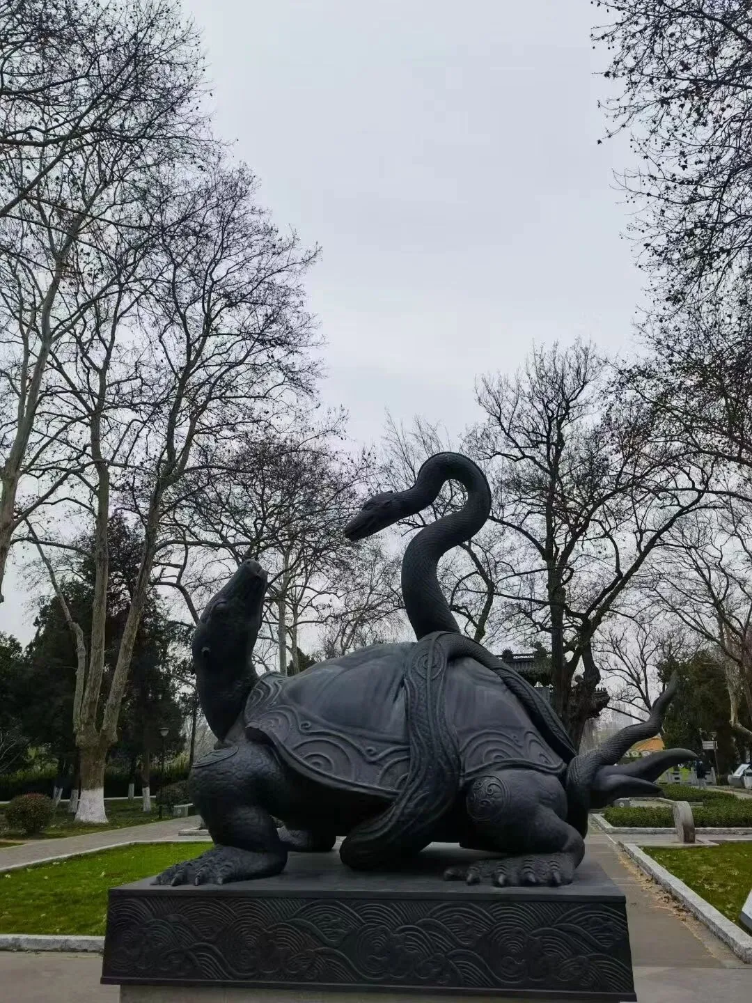漫步在园内,不仅可以领略匠心独运的优美景致,还能感受到独特深厚的文化底蕴。走着走着,一幅巨型书卷在你的面前打开,上面书写着南朝.梁.萧统的“何必丝与竹,山水有清音。”来到龟蛇同体的神兽“玄武”的面前,门帘上书写着“主天地以兴社稷,化龟蛇而祐黎元”.......