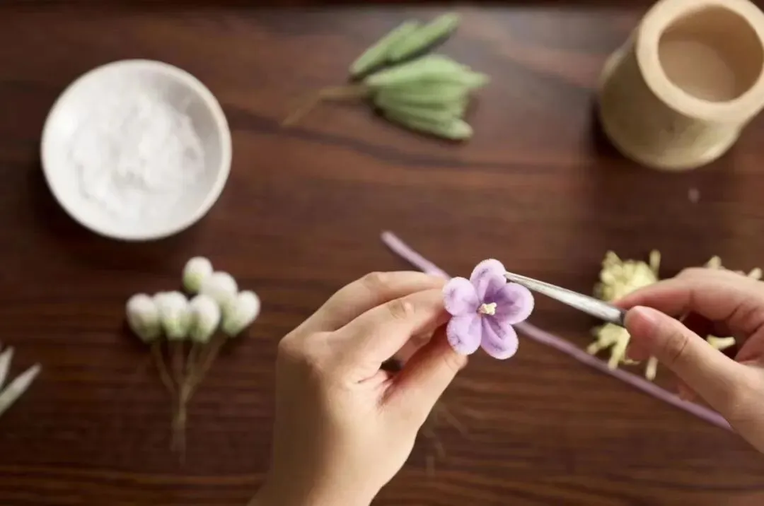 南京绒花凝结了古代工匠对自然美的观察、对吉祥寓意的追求,以及精益求精的工匠精神。从宫廷到民间,从传统头饰到现代文创,绒花始终承载着人们对美好生活的向往。如今绒花作为旅行的“信物”让我们不再拘泥于走马观花的欣赏美景,而是沉下心来体验每个城市特有的魅力,这片小小的绒花成为永不凋谢的东方之美。