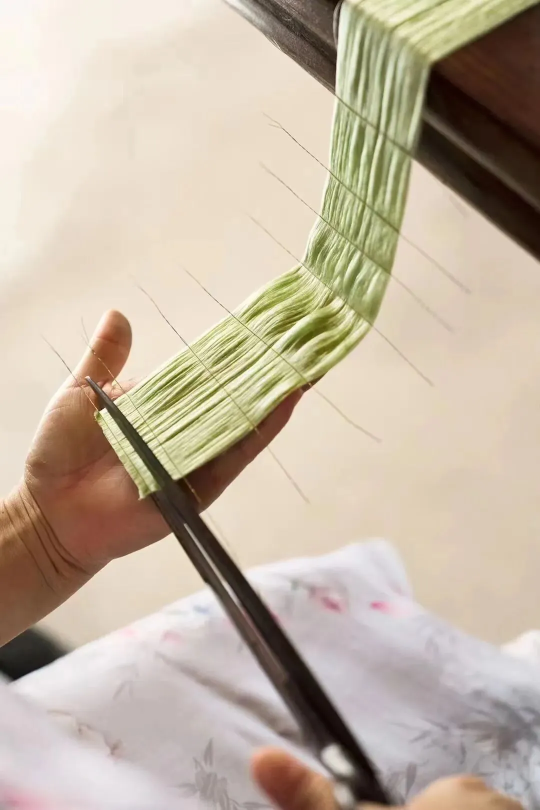 染色:用苏木、红花、靛蓝等植物染料或矿物颜料,将绒丝染成红、粉、绿、黄等数十种色彩,色泽古朴典雅,久不褪色。