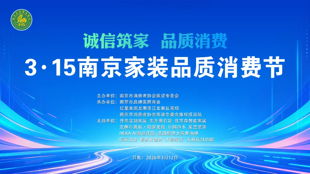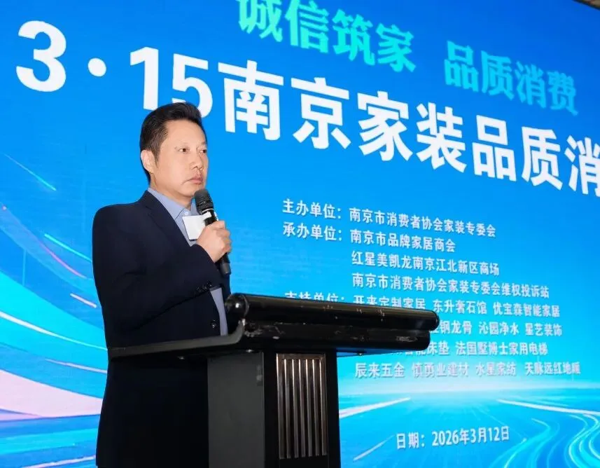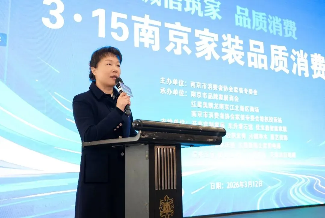 3月12日下午,由南京市消费者协会家装专委会主办,南京市品牌家居商会、红星美凯龙南京江北新区商场、南京市消费者协会家装专委会维权投诉站承办的,诚信筑家、品质消费“3·15南京家装品质消费节”活动,在南京隆重举行,南京市市场监管局党组成员、副局长施冬咏,南京市消费者协会副会长兼秘书长李国兴,南京市品牌家居商会会长张宇栋,红星美凯龙南京江北新区商场相关负责人,南京知名家装公司、家居建材品牌企业、部分消费者近80人参加。南京市市场监管局党组成员、副局长施冬咏在致辞中说,今年中国消费者协会将“提升消费品质”定位年度主题,聚焦家装消费这一民生重点领域,既是践行消费维权职责,也是规范家装市场,守护消费者安居权益的务实之举,她表示,家装消费关乎千家万户的居住幸福感,是重要的民生消费领域。她要求家装消费,要严守诚信底线、构建透明消费生态;要深耕品质创新、激活绿色消费动能;要强化协同共治、打造闭环维权机制,她希望南京家装企业以本次活动为契机,守诚信、精品质、共同营造公平有序、放心舒心的家装消费环境。张宇栋会长在致辞中说,南京市品牌家居商会作为全国“四好”商会,将自觉践行诚信经营理念,强化行业自律,规范市场行为。“3·15家装品质消费节”不仅是一场行业盛宴,更是每一个家装公司向消费者展示诚信、承诺与服务的窗口,一次推动行业自我革新、迈向高质量发展的集体宣言。
