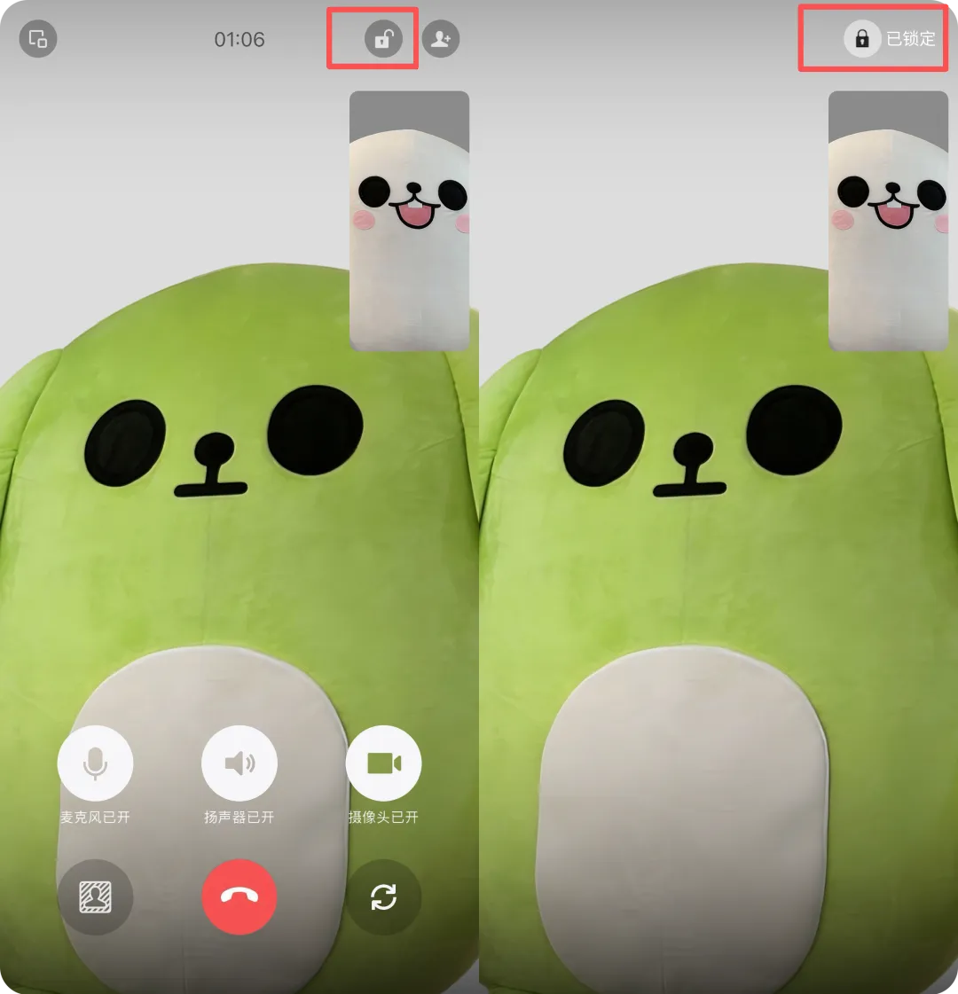 微信视频时点击右上角🔒图标,可锁定屏幕。该功能正在逐步放量中。
