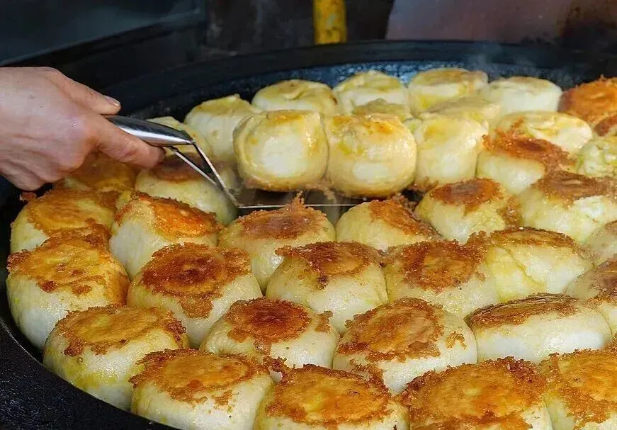 ■ 小庞牛肉煎包(在杨浦区永吉路)的煎包是现做现包的,牛肉不咸不腻,汁水浸润在面皮中,小嗦一口汁水四溢。据说,这家店的牛肉只选2至3岁的牛,用传统铁锅煎烤,煎出的煎包皮薄馅大,肉质细嫩。