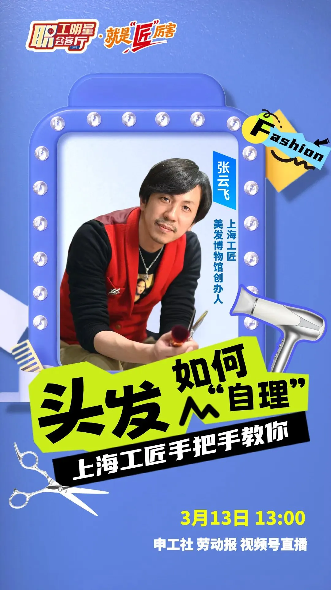 头发如何“自理”?上海工匠手把手教你!今天下午13:00劳动报视频号直播!