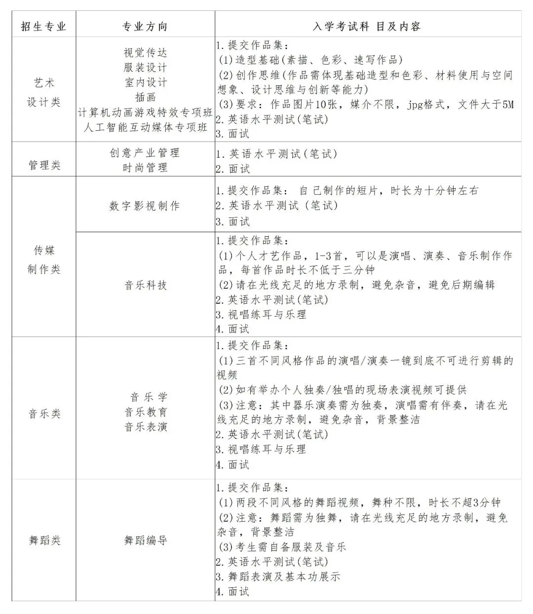 4. 报考音乐类专业的考生,演唱需自备伴奏,演奏类除钢琴外其他乐器自备。