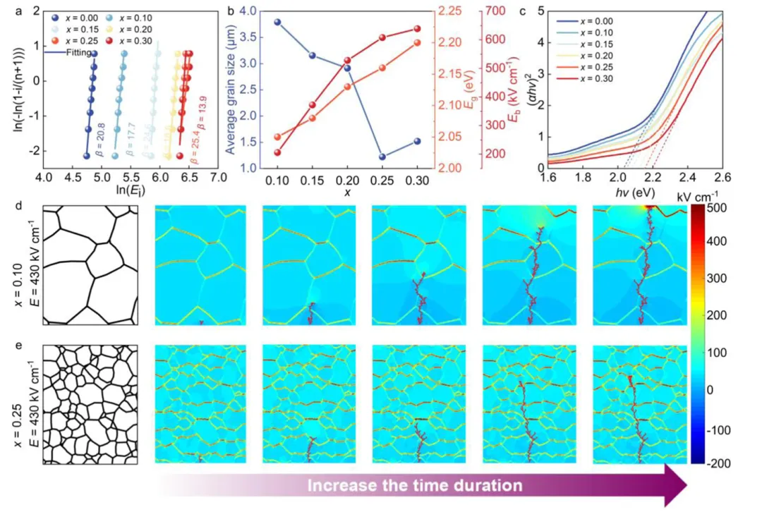 图4. BBFT-xSM陶瓷的击穿行为及机理研究