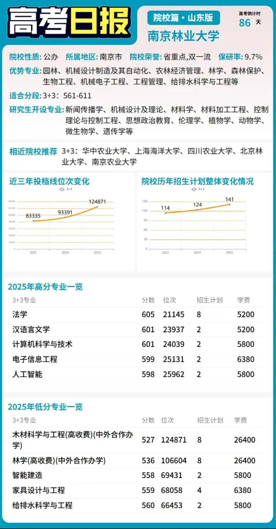 距离2026年高考还有86天,各年级的学子及家长们继续努力拼搏!今日介绍南京林业大学。